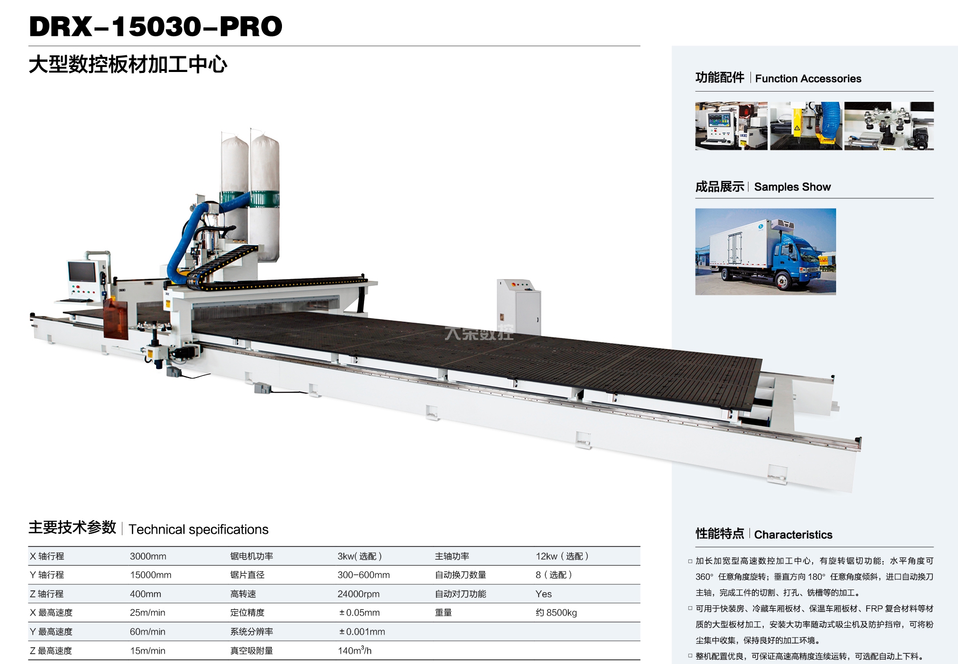大榮偉業公司本著"品無止境,誠信為本,追求卓越"的原則,精心投入 CNC 數控機械行業,先后研發出:CNC 五軸聯動加工中心、數控板材加工中心、數控板式家具生產線幾大系列十幾個規格的產品。被廣泛應用于機械,科研院所,保麗龍加工、車輛內飾、厚片吸塑件、鋁板、輕金屬、絕緣材料、各類木板材、木器、木門、模具、化工、廣告、石材加工等不同領域,并遠銷世界各國。欣大榮公司借鑒國外技術,采用原裝進口優質配件,確保整機質量。企業已通過 ISO9001質量體系認證及 CE 認證。